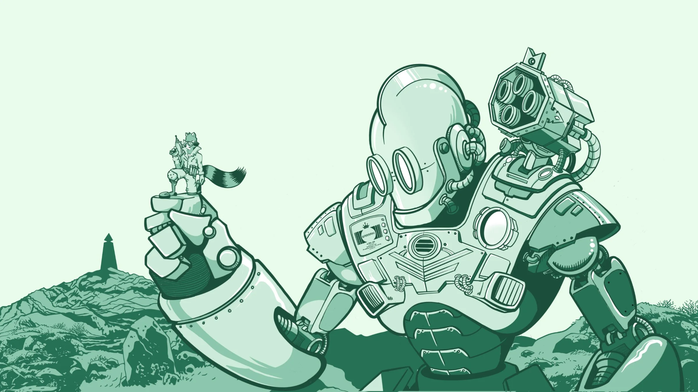 Decimus Dynamics Mechs are Piloted by sentient Raccoons in a Dystopian Future To Save Earth From Evil Alien Invaders!